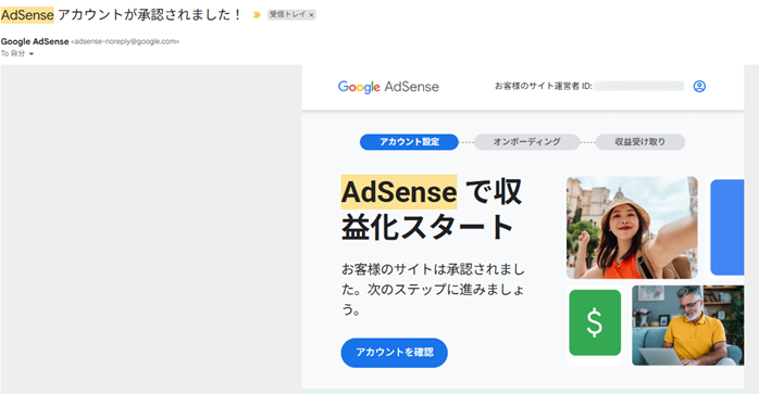 画像引用:Google AdSense(adsense-noreply@google.com)からの審査結果メール