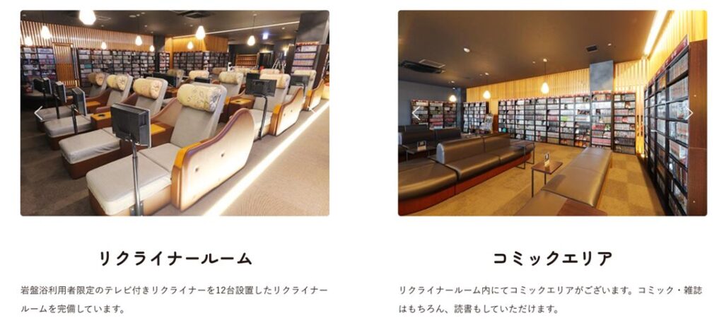 岩盤浴やサウナを楽しんだあと、ゆったりと過ごすことができますね。